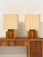A Pair of French Table Lamps by Maison Regain Circa 1970 in Solid Elm Wood & Super Original Condition