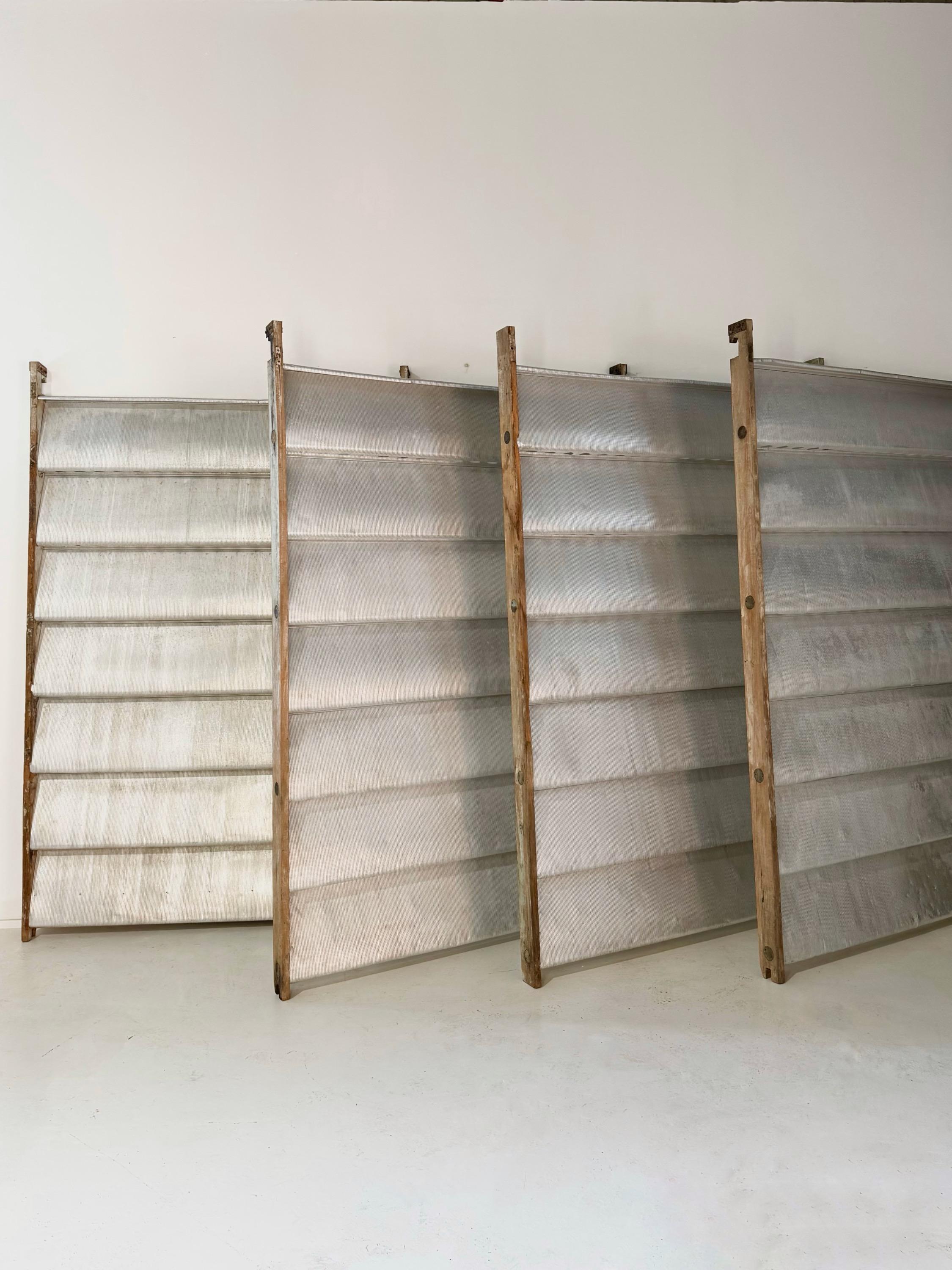 A Rare Set of 4 Jean Prouvé « Ondes »Aluminium & Painted Wood Sliding Panel, Africa 1963. In Super Original condition. Dim = 271 x 178 x 10,5 cm