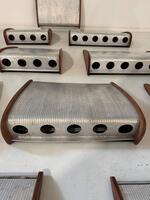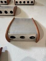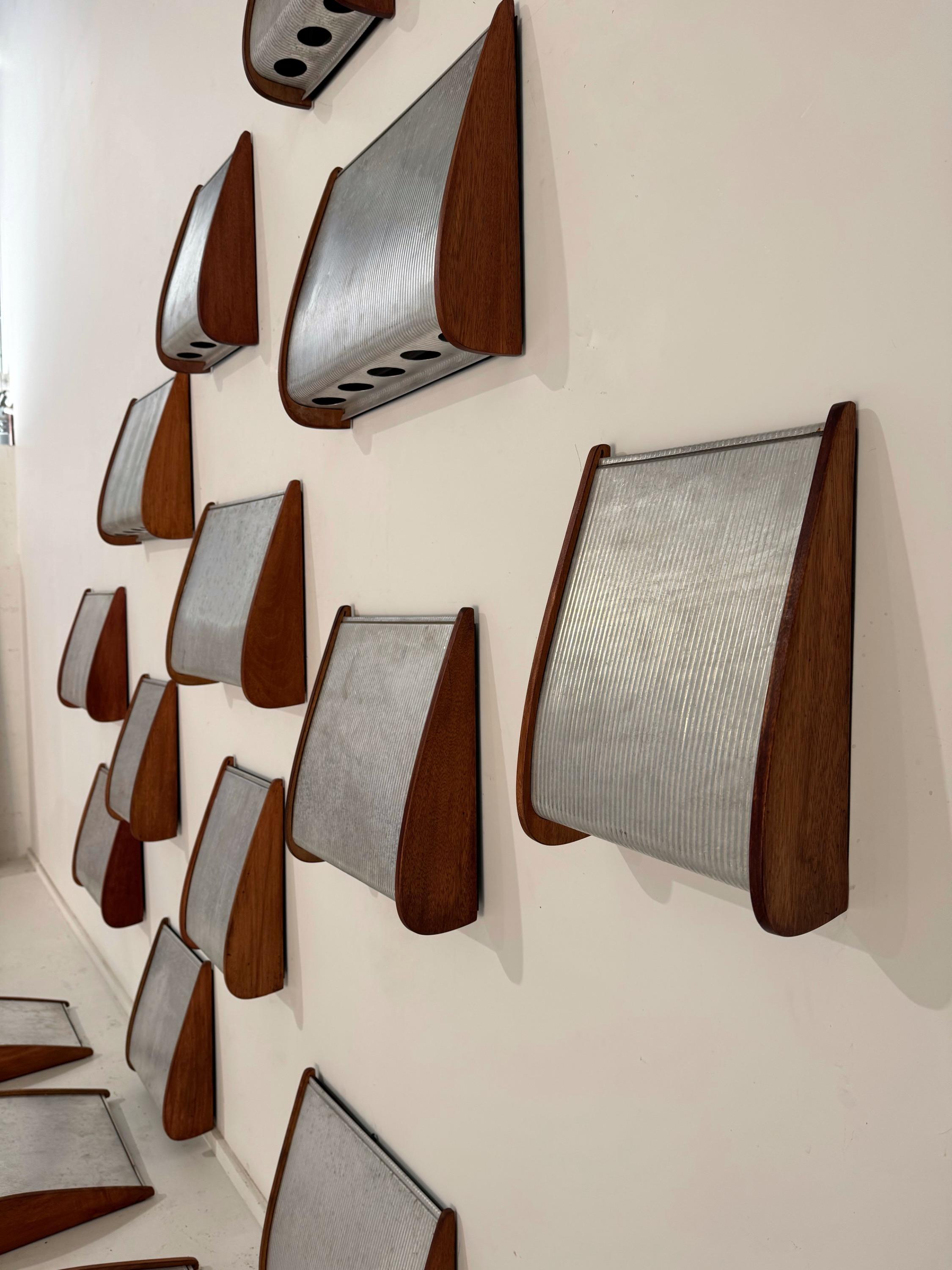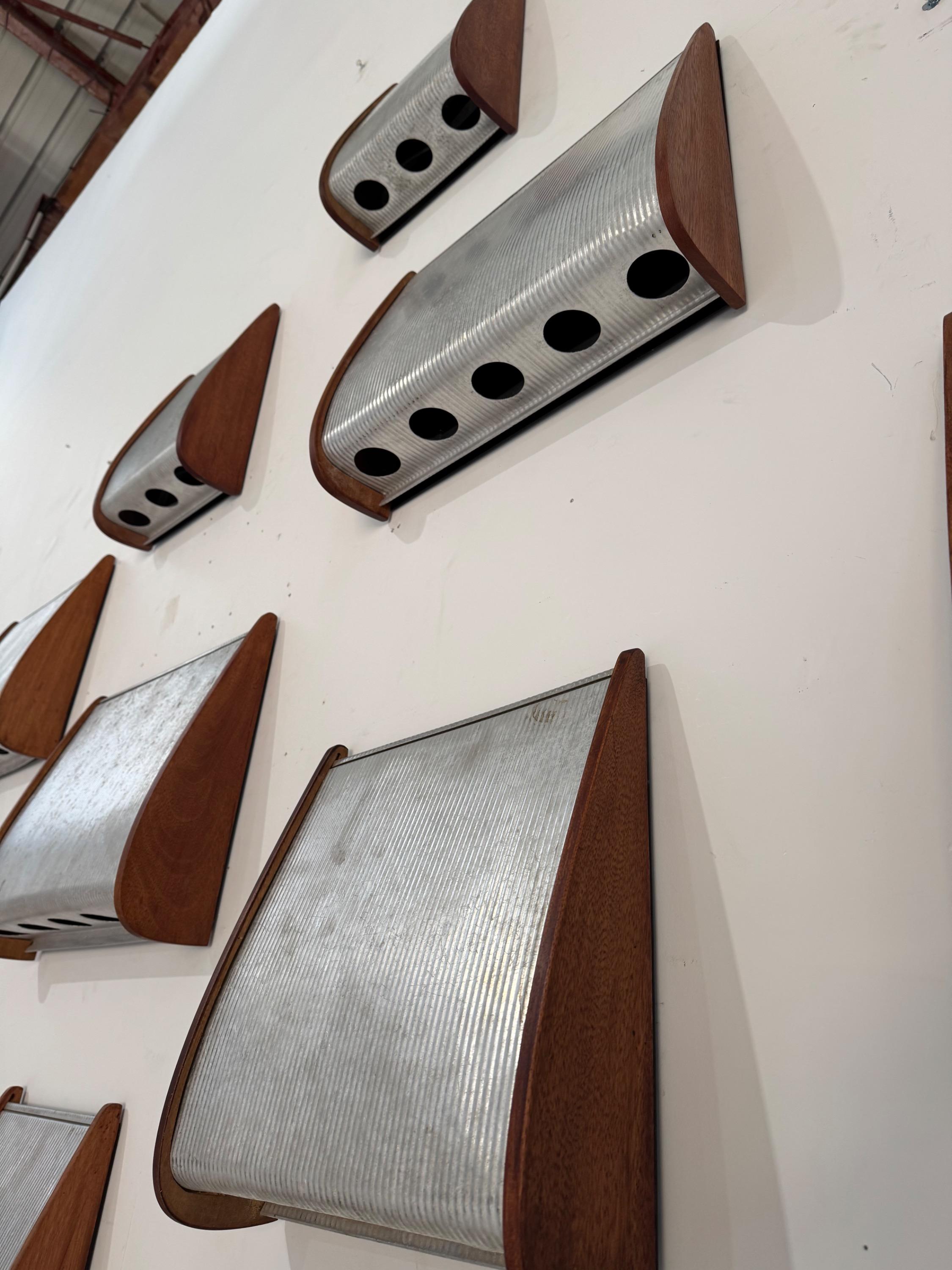 When we buy Jean Prouvé’s buildings in Africa, many elements are very damaged and unusable. So, an excellent idea came, made lamps with these famous aluminum elements.